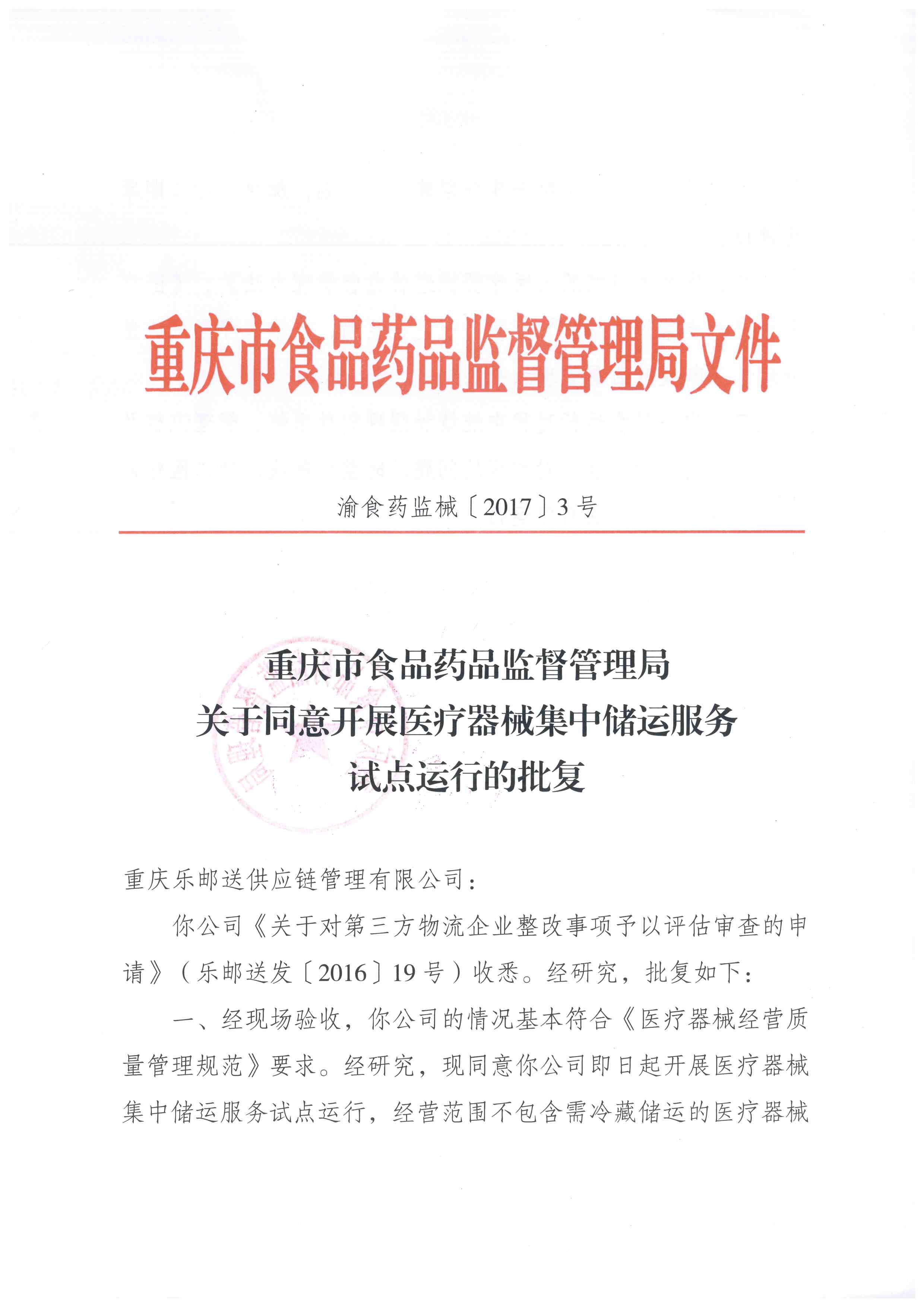 2月15日,加加林控股旗下重庆乐邮送供应链管理有限公司收到重庆市食品药品监督管理局关于同意开展医疗器械集中储运服务试点运行的批复,标志着加加林众创空间正式接收企业或个人入驻。