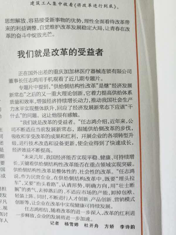 “未来几年,我国经济能否实现平稳、健康、可持续增长,关键看供给侧结构性改革能否在重点领域实现突破。供给侧结构性改革是整体性的、社会性的改革。”任志鸿说,作为民营企业,在供给侧结构改革中,既要“埋头拉车”,又要“抬头看路”,认清形势,明确方向,用“壮士断腕”的勇气,去掉落后的、不适应市场的产能,卸掉包袱、轻装上阵。同时,不断进行人才创新、产品创新、营销模式创新等,让企业在改革中实现健康可持续发展。